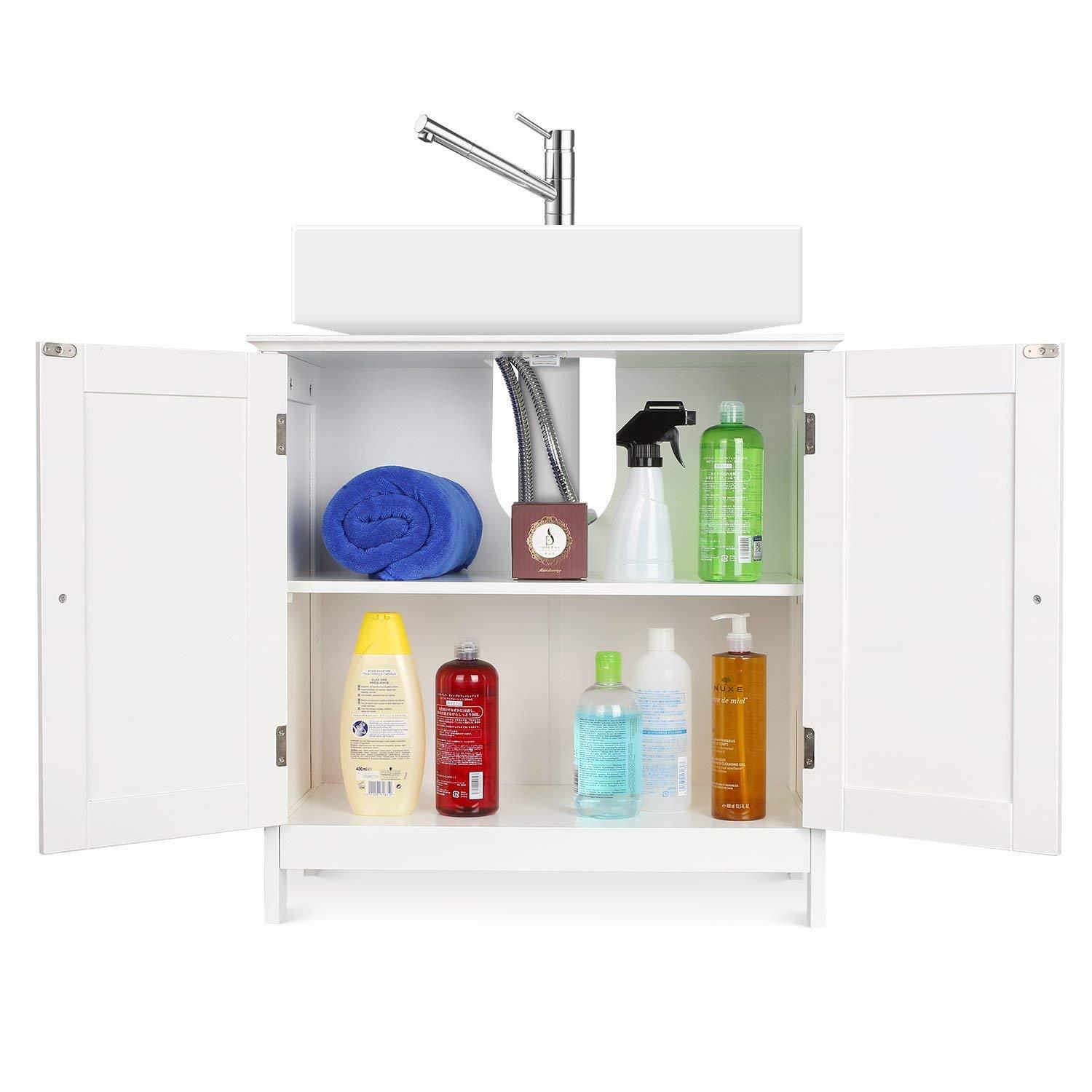 Welcome to our site! We are glad to give you a recommendation of this Storage Furniture Bathroom Sink Cabinet. This under sink cabinet not only looks good but would be a ideal space saving solution for you bathroom. It features two slatted doors with internal shelves, so you can store all your bathroom essentials in it and keep your bathroom neat and tidy. Moreover, it has a smooth white finish which will blend nicely with your modern or traditional decoration. So what are you waiting for? Just take it home!