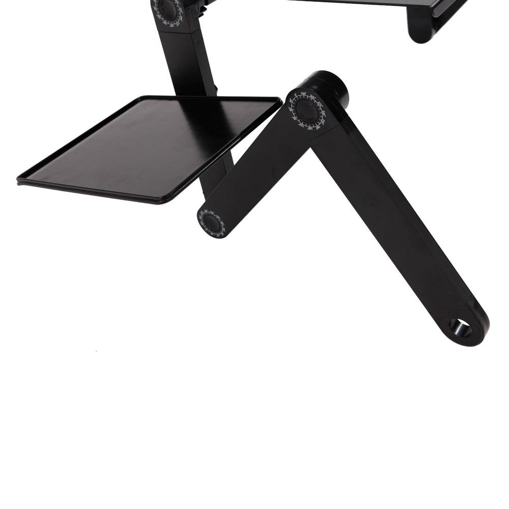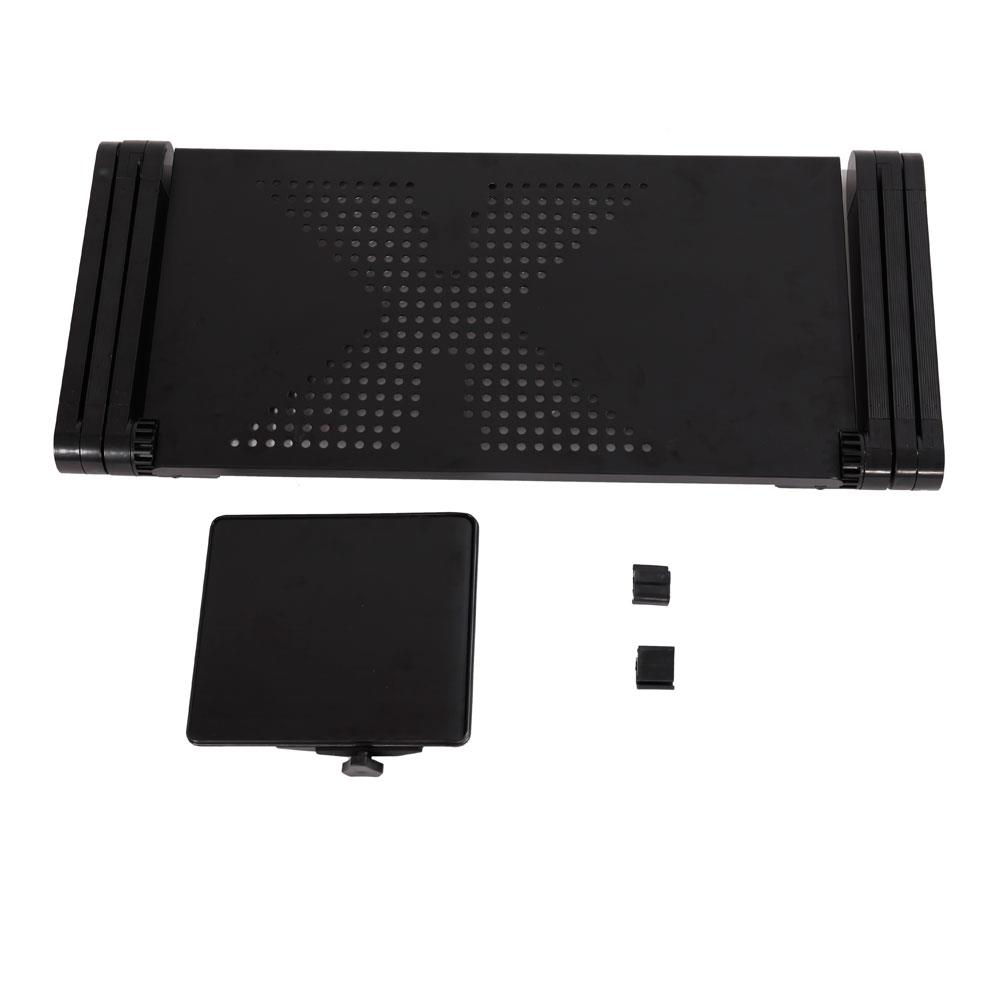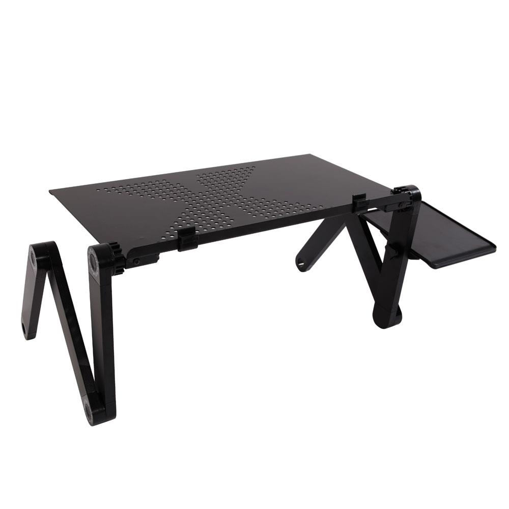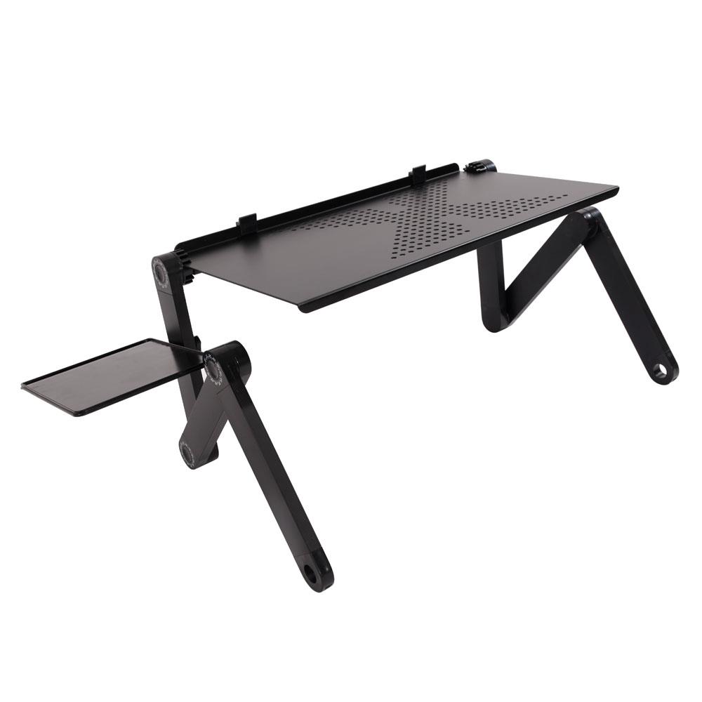 This is a portable and versatile folding computer desk that can be placed on a desk to be a standing desk, or on a bed or anywhere you want to use your laptop comfortably! You can also put books or tablets to free your hands.The foldable table legs can be rotated 360 degrees. Lock the position at different angles. Press the adjustment knob to adjust the angle. The knob has a scale for you to confirm the angle and adjust balance of the table. The legs are made of aluminum alloy, which is durable and flexible.