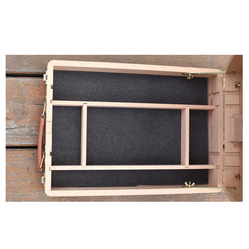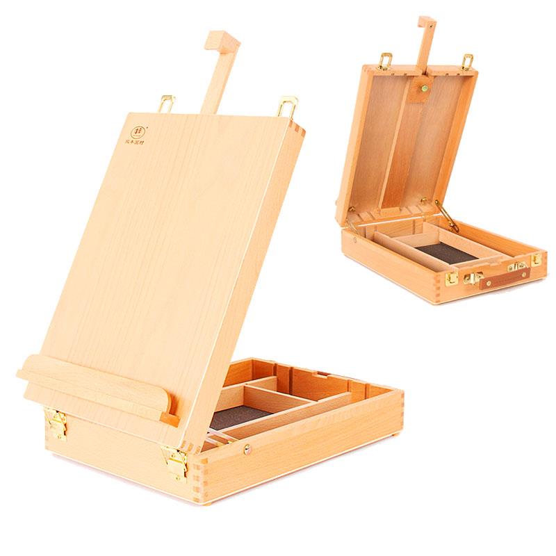 Get high quality arts tools here at our website! The HBX-11 Portable Beech Sketch Box with Easel is a portable paint tool storage box that converts to a sketch easel with easy adjustment. The storage box provides divided interior with five large compartments to hold brushes and other essential gear. Built-in easel accommodates 4K sketchpad and positions it in a comfortable angle. Constructed of high-grade beech wood, this sketch box is sturdy and impact resistant. It also comes with a top handle for ease of carrying. Click and order now!