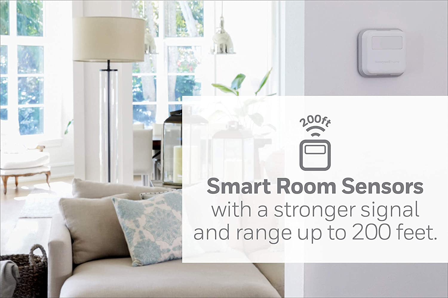 Welcome to 'Just Right' Sense the temperatures in the places that matter most with the T9 Smart Thermostat. Focus on the rooms you choose by setting a schedule — or let the sensors respond to your lifestyle, helping save energy when you leave and preparing that ideal temp for your return. Smart Sensors, Smart Living Whole Home Coverage Place Smart Room Sensors around your home to see each room’s temp and humidity. Focus on specific rooms you choose, or let the sensors focus on rooms people are in. Sensors have a stronger signal reaching up to 200 feet, spreading further across the whole home to increasing quality of signal and data presented to the T9 thermostat.